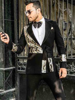 Weddings are bling affairs. Embellished outfits always work for the D-Day. This wedding season go for a three-piece suit. Team a classic frosted white shirt with plain black trousers and complete the look with an embellished blazer and a tie. It will make you look trendy and will add a style statement to your personality.
